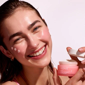 Das Hydratisierende Weintraubenwasser-Gel ist mit präbiotischem Bio-Weintraubenwasser™ und Bio-Aloe Vera angereichert und ein echtes natürliches Feuchtigkeitspflaster, das die Hautbarriere stärkt. Die ultra-frische Gel-Creme-Textur, deren Formel ohne Silikone entwickelt wurde, schmilzt auf der Haut, ohne einen Fettfilm zu hinterlassen. Die Haut ist bei der Anwendung sofort geschmeidiger, wie mit Wasser gefüllt und der Teint wirkt frischer.