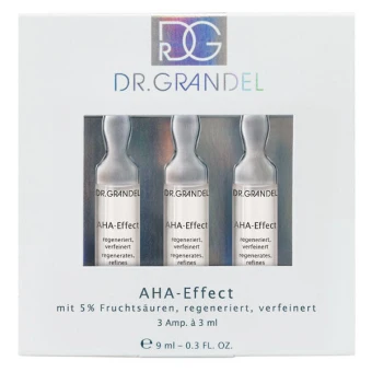 Anwendung der Wirkstoffkonzentrate: Durch Klopfen auf die offene Ampulle Wirkstoffkonzentratausbringen. Ampulleninhalt portionsweisein die hohle Hand geben. Direkten Kontakt von Ampullen-Abbrechstelle und Haut vermeiden. Erst dann mit den Fingerspitzen auf die sorgfältig gereinigte Haut von Gesicht, Hals und Dekolleté auftragen und einige Minuten sanft einklopfen. Anschließend die gewohnte DR. GRANDEL Pflegecreme auftragen.