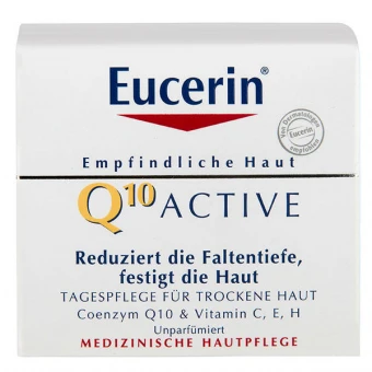 Die Eucerin Q10 ACTIVE Tagespflege ist speziell mit dem hochwirksamen, hauteigenen Coenzym Q10 entwickelt, um Zeichen der Hautalterung wie Falten speziell bei empfindlicher Haut entgegenzuwirken. Ihre reichhaltige Formel mit den Vitaminen C, E und H pflegt empfindliche und trockene Haut intensiv.
