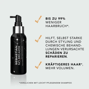 Für intensiv gepflegtes Haar ohne Verzicht auf natürliche Fülle und Volumen. Das mit Äpfelsäure formulierte Leave-in Spray dringt tief ins Haar ein und hilft, selbst starke durch Hitze, Styling und chemische Behandlungen verursachte Schäden zu reparieren, indem es neue Bindungen innerhalb der Haarfaser knüpft und durch Stylingpolymere für Volumen sorgt. NO.BREAKER garantiert bis zu 99 % weniger Haarbruch.*
